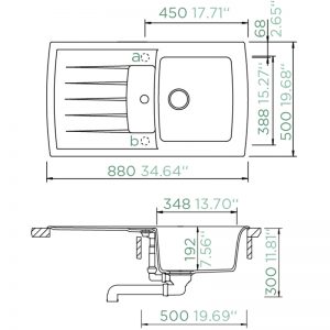Мивката е окомплектована с: автоматичен сифон с преливник(възможност за включване на миялна/пералня), щипки за монтаж