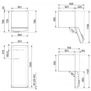 *Обърнете внимание, че пантите на вратата са вътрешни и отваряне й на 90° излиза с 16.3 см извън габаритите на хладилника (вижте монтажната схема).