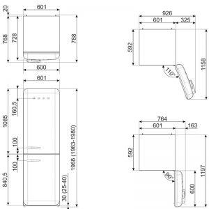 *Обърнете внимание, че пантите на вратата са вътрешни и отваряне й на 90° излиза с 16.3 см извън габаритите на хладилника (вижте монтажната схема).