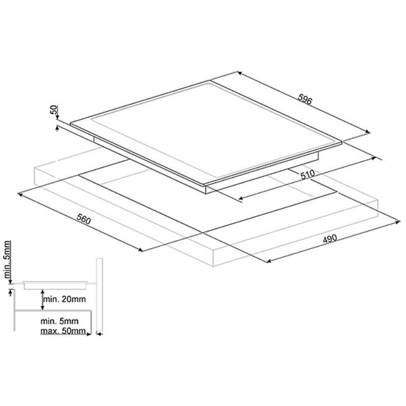 Индукционен плот, 60 см, скосен ръб, антрацит , месингов обков