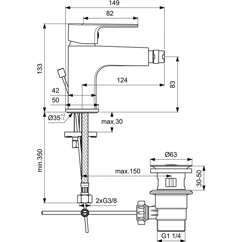 - ESLA смесител за биде с 35mm керамичен затварящ механизъм с ограничител на топлата вода.